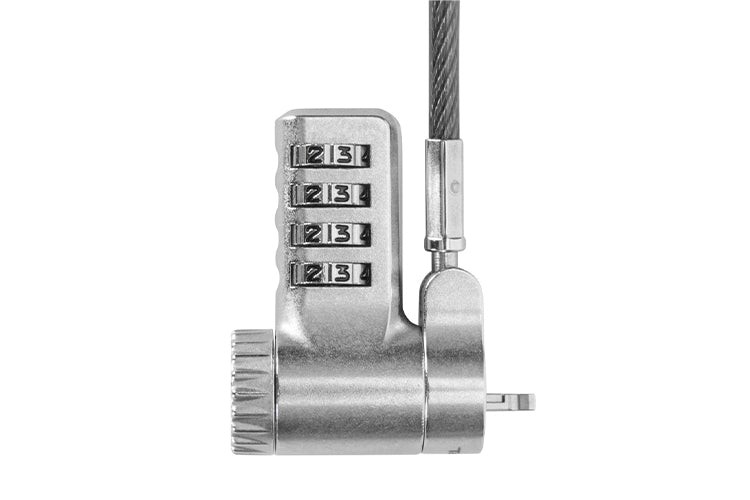 With a unique design for a secured, universal fit, we’ve eliminated the need for interchangeable heads, which means there aren’t heads to lose or replace. This lock fits virtually any lock slot, including Kensington® Nano, Kensington K-Slot, and the oversized Noble wedge-shaped lock slots.