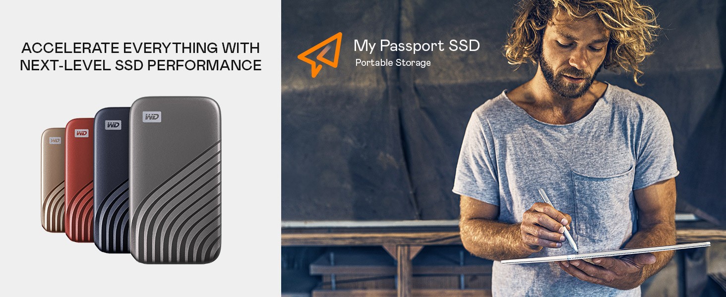 Stylishly designed in a range of colors, enclosed in a compact sleek metal design. The My Passport SSD is engineered from the ground up to be a quality drive, inside and out, to deliver reliable performance. It’s a trusted drive built with WD reliability.