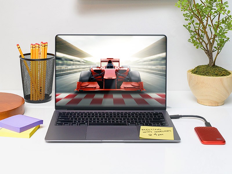 Larger files and more content demand next-level performance. The My Passport SSD delivers read speeds of up to 1050MB/s* and write speeds of up to 1000MB/s*, so you can access your digital world anytime, anywhere.