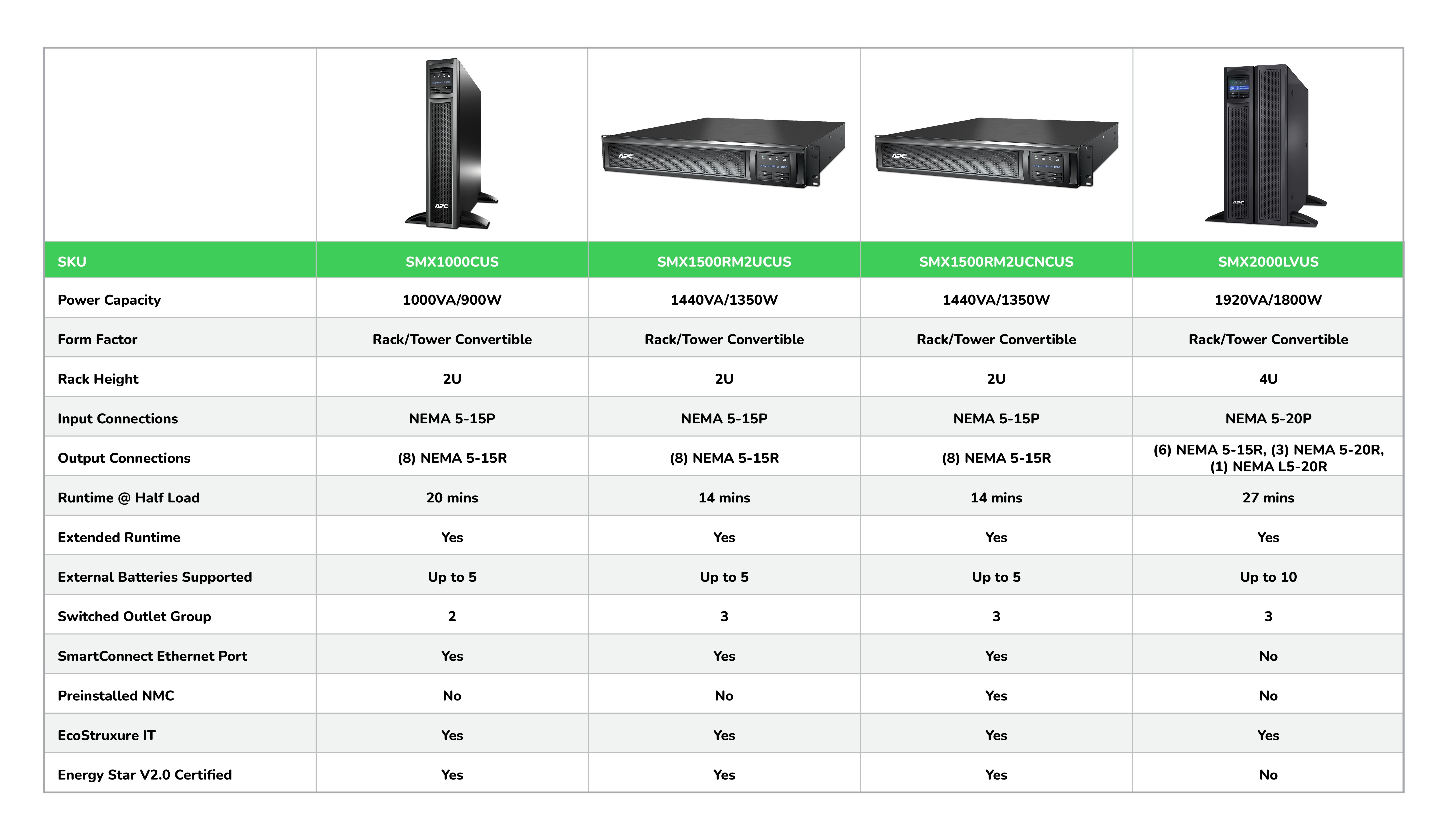 APC’s patented ‘green’ mode bypass components that perform AVR when not needed. This results in higher efficiencies across a wide range of load conditions.