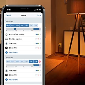 Schedules enable you to automate lights, humidifiers, fans and other vital devices. You can then get on with your business while your accessories get on with theirs – all without the need for a home hub and independently of your iPhone or internet connection.