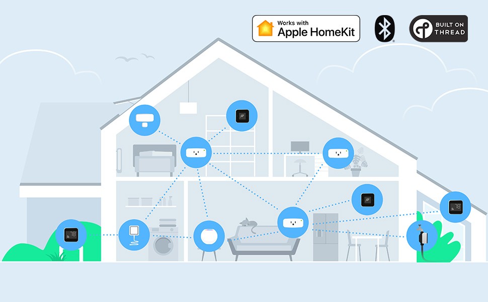 Eve Energy supports Bluetooth and Thread, and joins your Thread network automatically. As a router node, Eve Energy relays other Thread accessories’ data packages and enhances the stability and reach of your smart home.