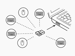 Pair up to six Logi Bolt wireless and keyboards to a single Logi Bolt USB receiver.