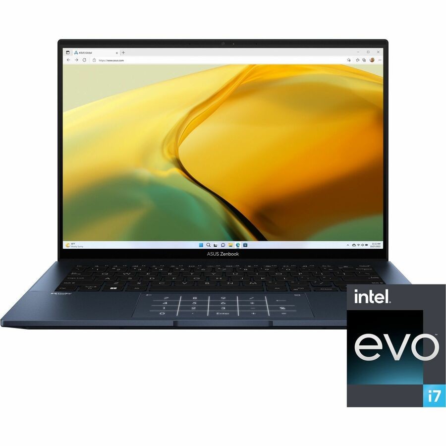 The powerful and compact Zenbook 14 OLED is just 16.9 mm slim and 1.39 kg light, with a breathtaking new design that’s timelessly elegant yet totally modern. You’ll experience perfect visuals from the expansive 16:10 2.8K OLED HDR NanoEdge touchscreen, a color-accurate up to 550-nit screen that’s PANTONE ® Validated and has a cinema-grade 100% DCI-P3 gamut. The 13th Gen Intel ® Core ™ i7 Processor, Intel Iris ® X e graphics, 16 GB RAM and 1 TB PCIe 4.0 SSD deliver superb performance, and there’s a long-lasting 75 Wh battery. For extraordinary sound, there’s a Dolby Atmos sound system powered by a smart amplifier. The user-centric design includes one-touch login with a fingerprint sensor on the power button, the new ASUS ErgoSense keyboard, and the efficient ASUS NumberPad 2.0. The bold new lid design is inspired by timeless Kintsugi craftsmanship, and it’s available in two fresh new colors: Ponder Blue and Foggy Silver. Zenbook 14 OLED is the new benchmark for portable perfection.