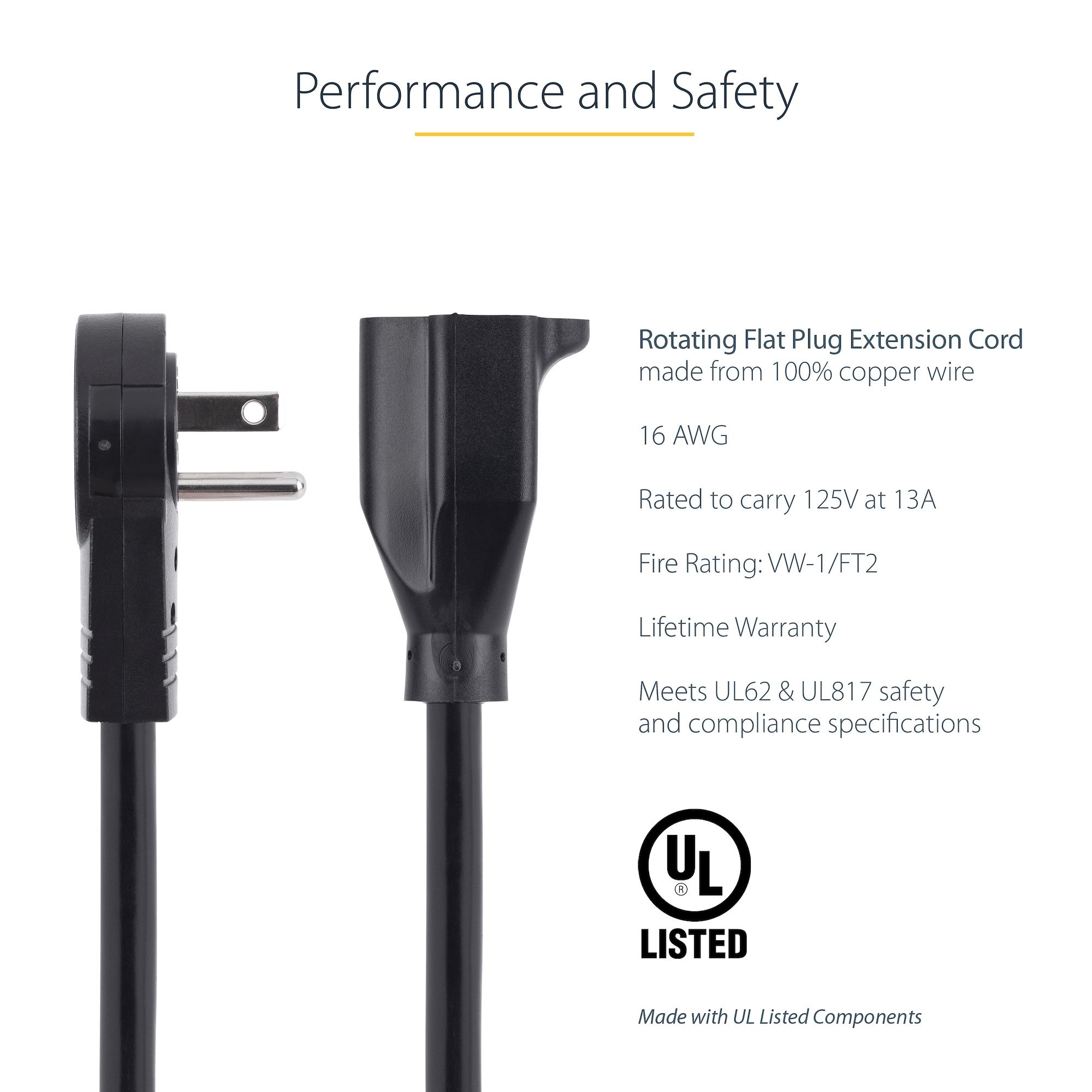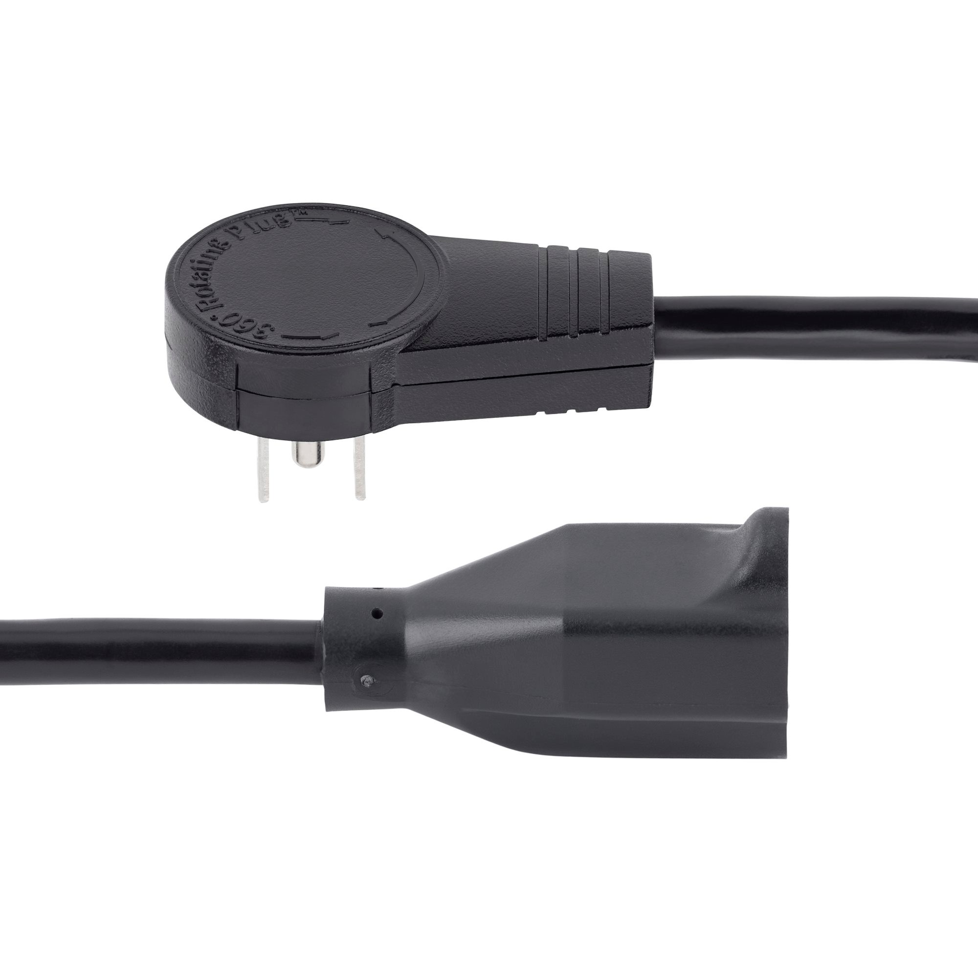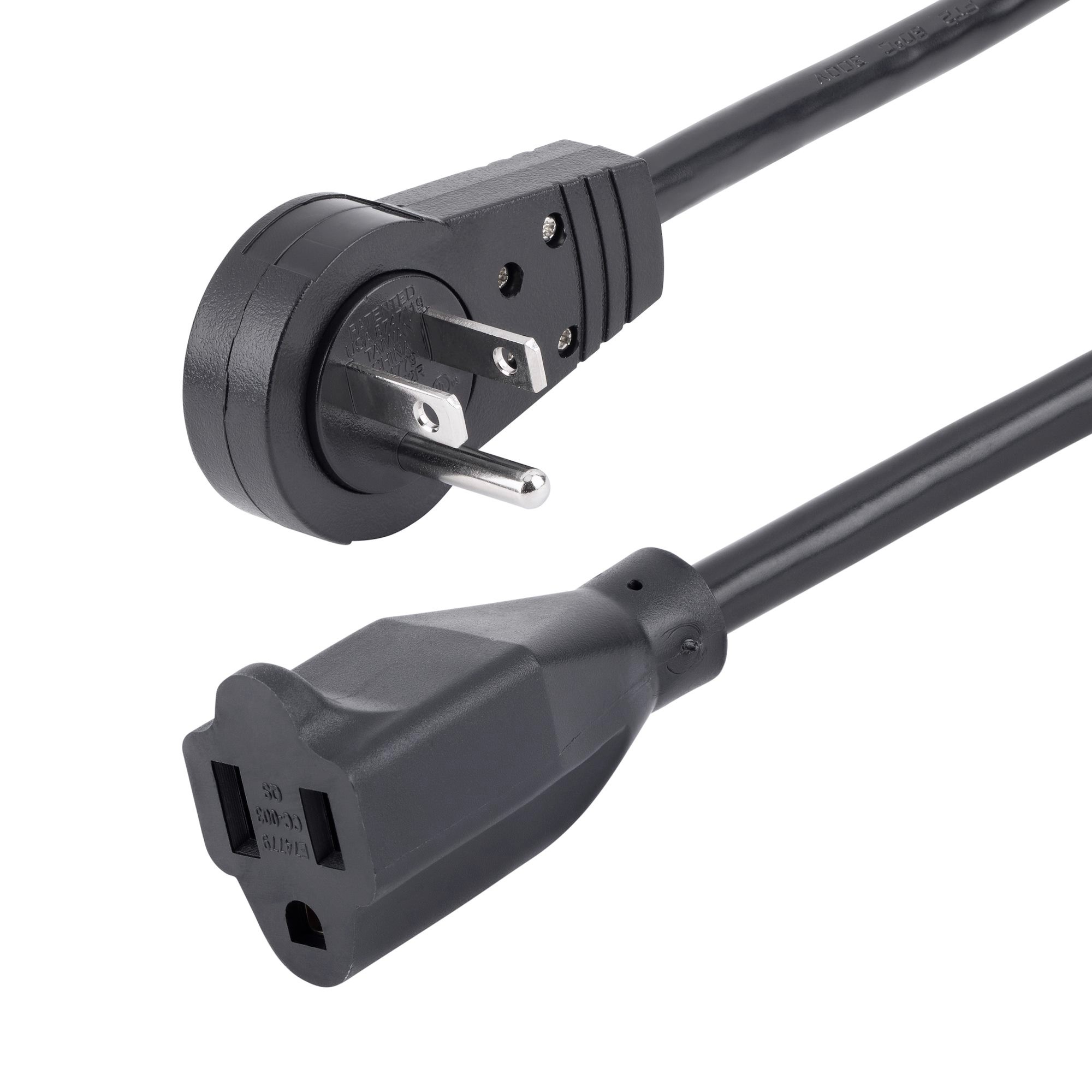This 3 ft. Power Extension Cord features a rotating NEMA 5-15P to NEMA 5-15R connectors, maximizing the space available on your power strip, surge protector, or wall outlet.