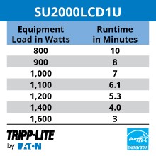 The SU2000LCD1U’s five NEMA 5-20R outlets are split into two switchable banks, allowing you to reboot select components or shed load remotely. A field-replaceable, hot-swappable internal battery provides 10 minutes of support at half load (800W) and three minutes at full load (1600W).