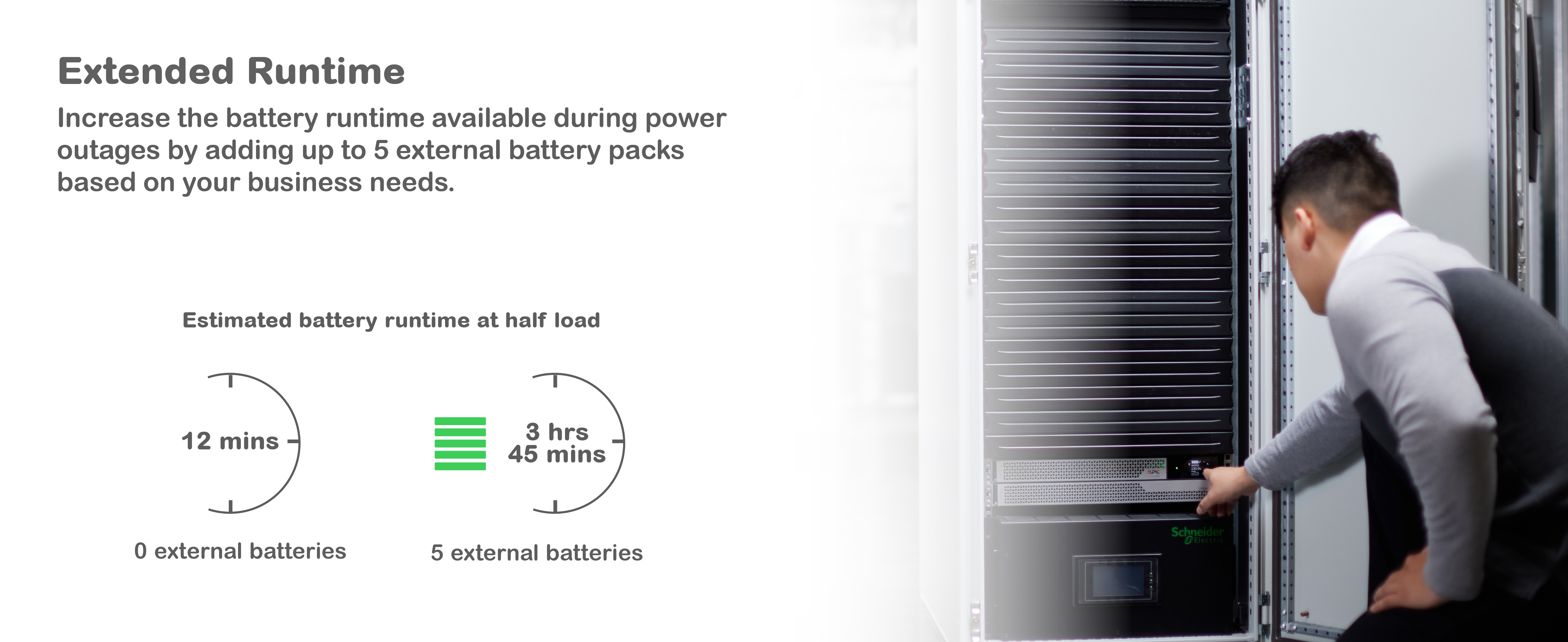 Smart-UPS Ultra features Lithium-ion batteries designed to last as long as the UPS. No replacement will be necessary under normal operating conditions.