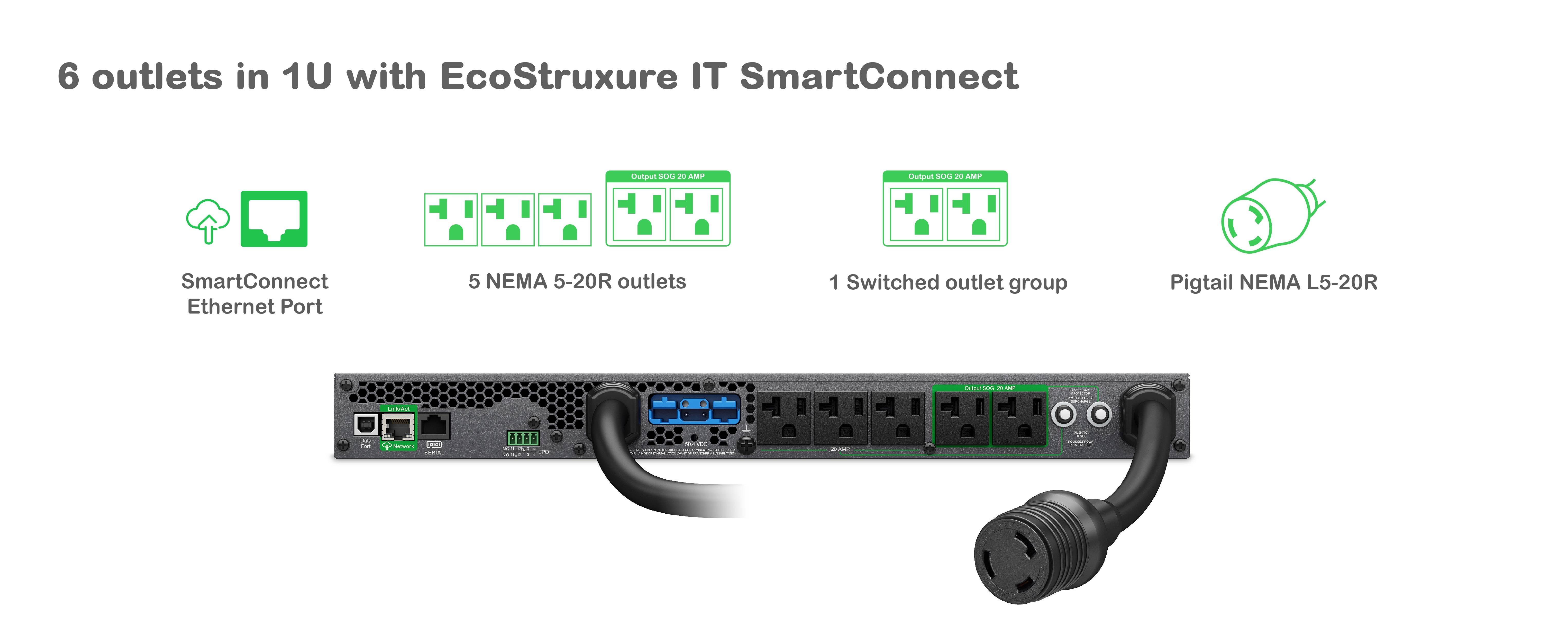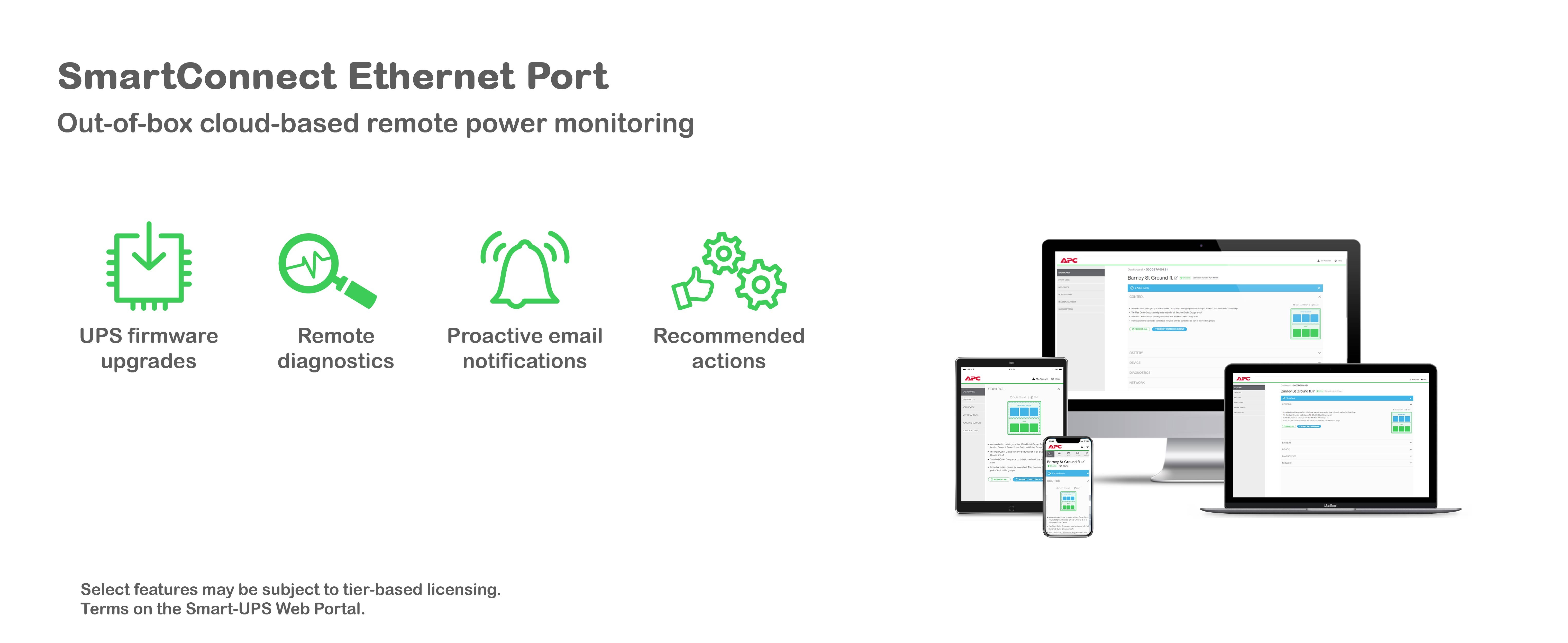 The APC Smart-UPS Ultra 2200VA with SmartConnect leverages next-generation semiconductor technology to deliver more power in a 1U form factor, giving you more space for IT equipment. The Lithium-ion battery eliminates the need for battery replacements, reducing the total cost of ownership. Smart-UPS Ultra’s EcoStruxure Ready remote monitoring and management options allow many tasks to be handled without stepping foot in your IT installation.