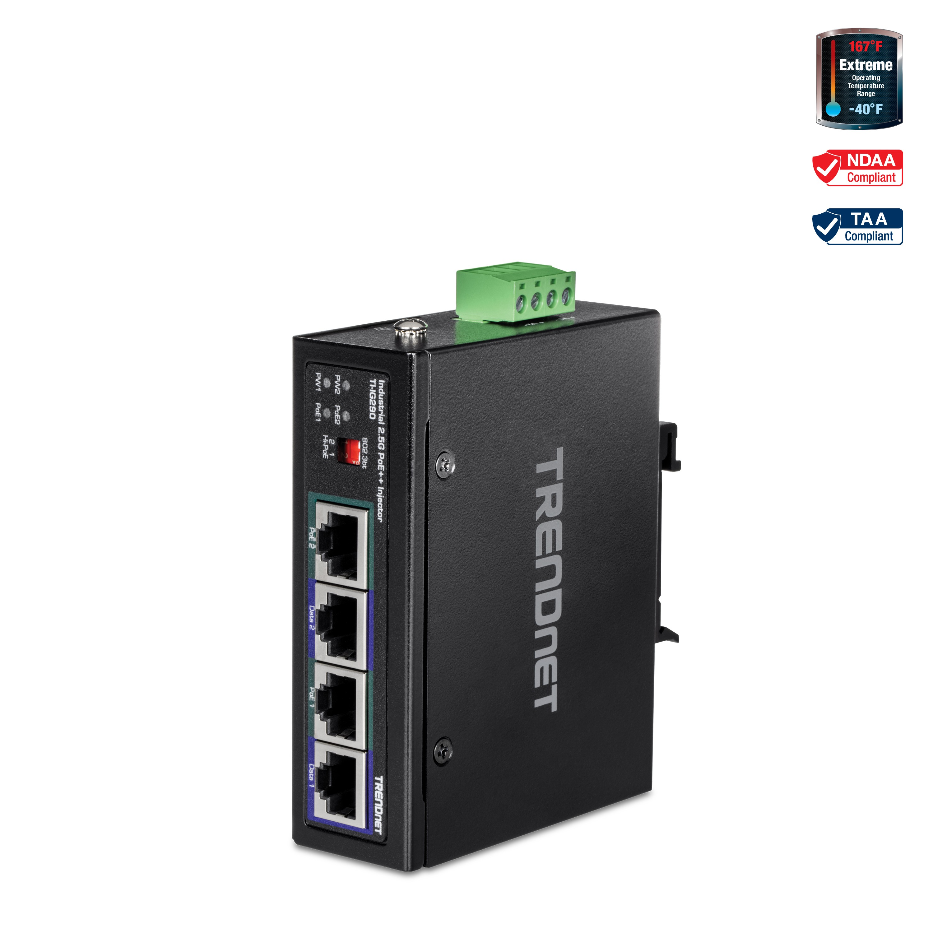 • INDUSTRIAL DESIGN: The 2-Port 2.5G PoE++ Injector is equipped with an IP30 rated metal enclosure, designed to withstand