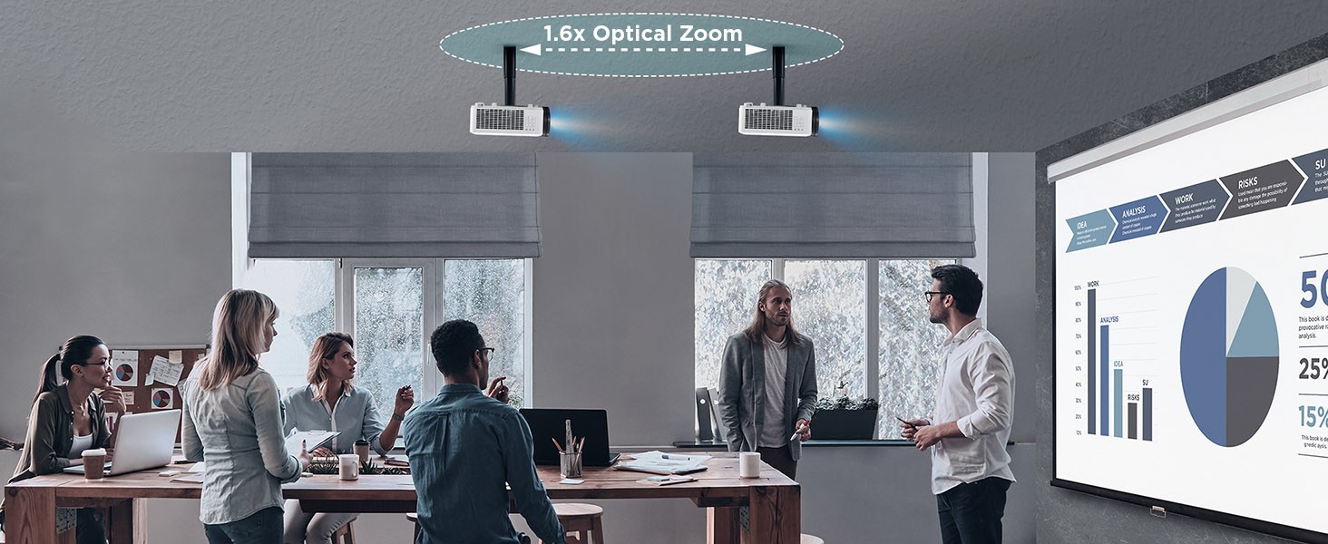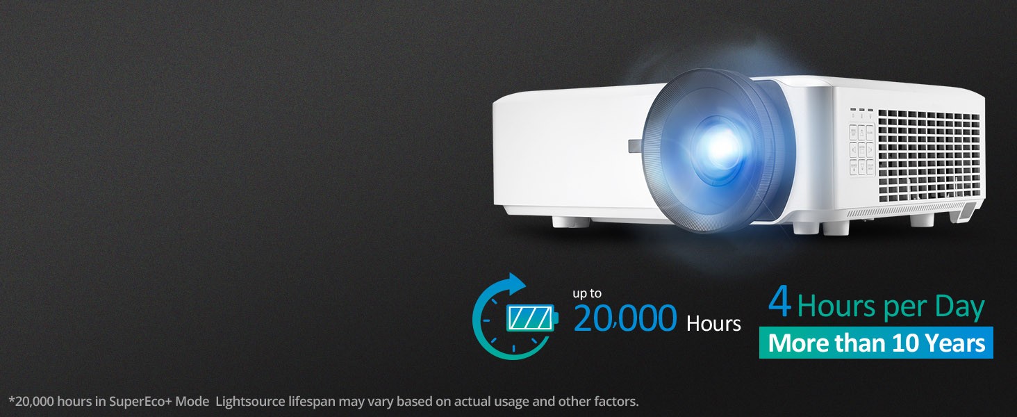 Bright and versatile for any professional installation, the ViewSonic ® LS920WU WUXGA laser projector delivers everything you need for big screens in big venues. Delivering 6,000 ANSI lumens of advanced high brightness, up to 20,000 hours* of light source life, and a screen size of up to 300”, this projector is ideal for auditoriums, boardrooms, restaurants, sports bars and more. This top-notch performer is also easy to deploy and manage with its wide 1.6x optical zoom adjustment, 360° projection, and portrait mode that provide extreme flexibility in even the most challenging installations. Dual HDMI 2.0b / HDCP 2.2 ports ensure access to original 4K quality content with HDR/HLG support. In addition, its compact size and built-in HDBaseT deliver the perfect mix of high-quality projection and cost-effectiveness.