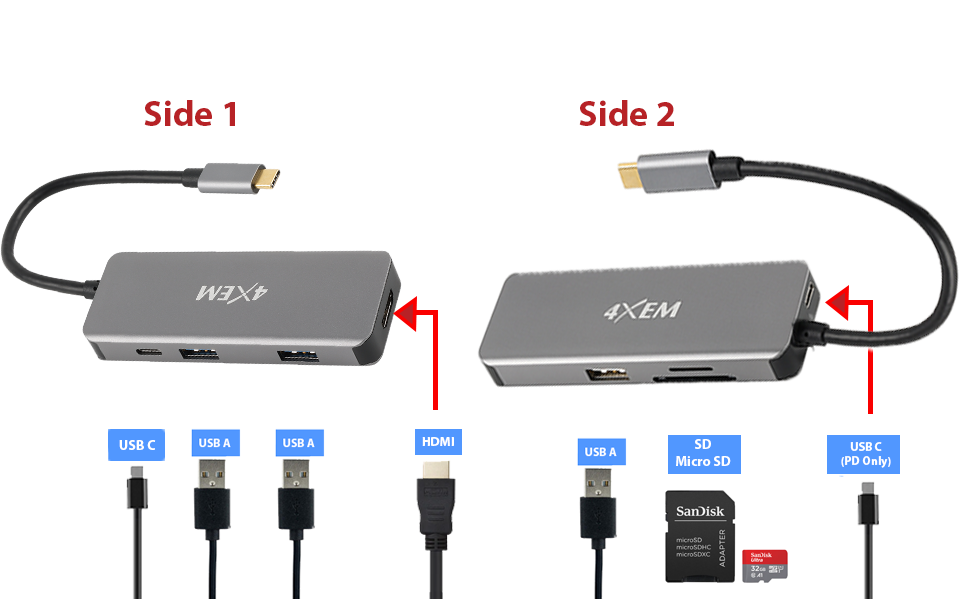 Connectivity has never been easier with 4XEM’s 8-in 1-out Type-C to HDMI/USB 3.0/TF/SD and USB-C adapter with Power Delivery.