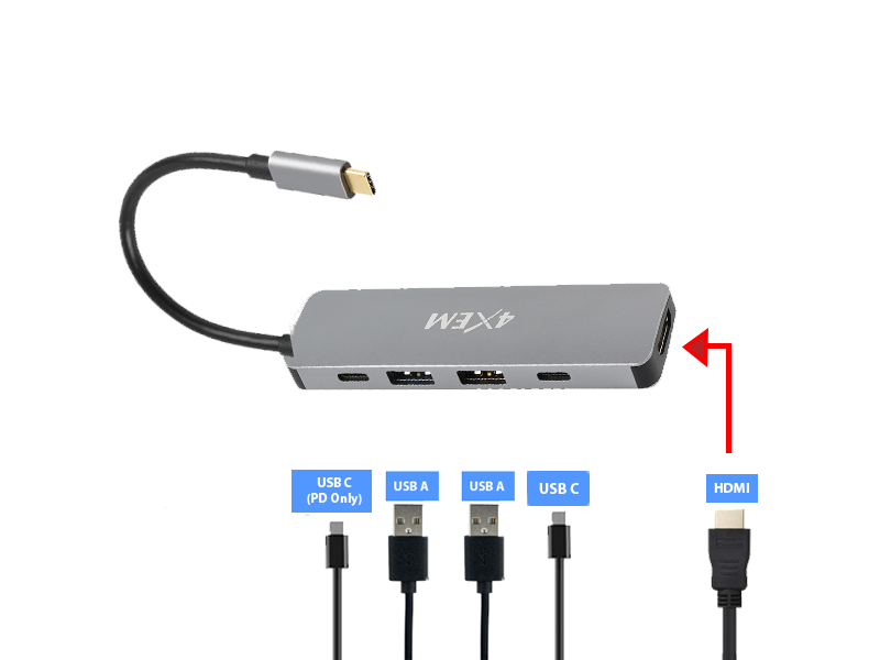 Connectivity has never been easier with 4XEM’s 5-in 1-out Type-C to HDMI/USB 3.0/TF/SD and USB-C adapter with Power Delivery.