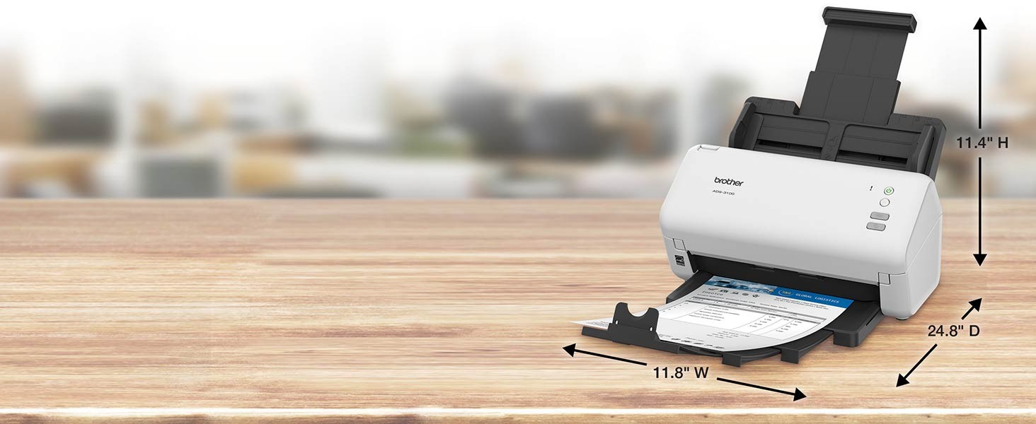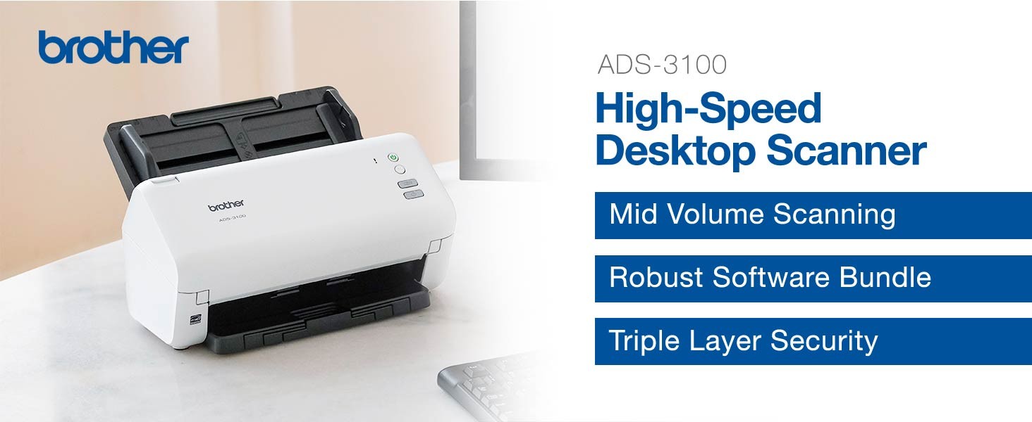 Upgraded Auto Document Feeder: The ADS-3100 auto document feeder performs single or double-sided document scanning, with an impressive capacity of up to 60 pages⁴ and additional page-continuous scanning.