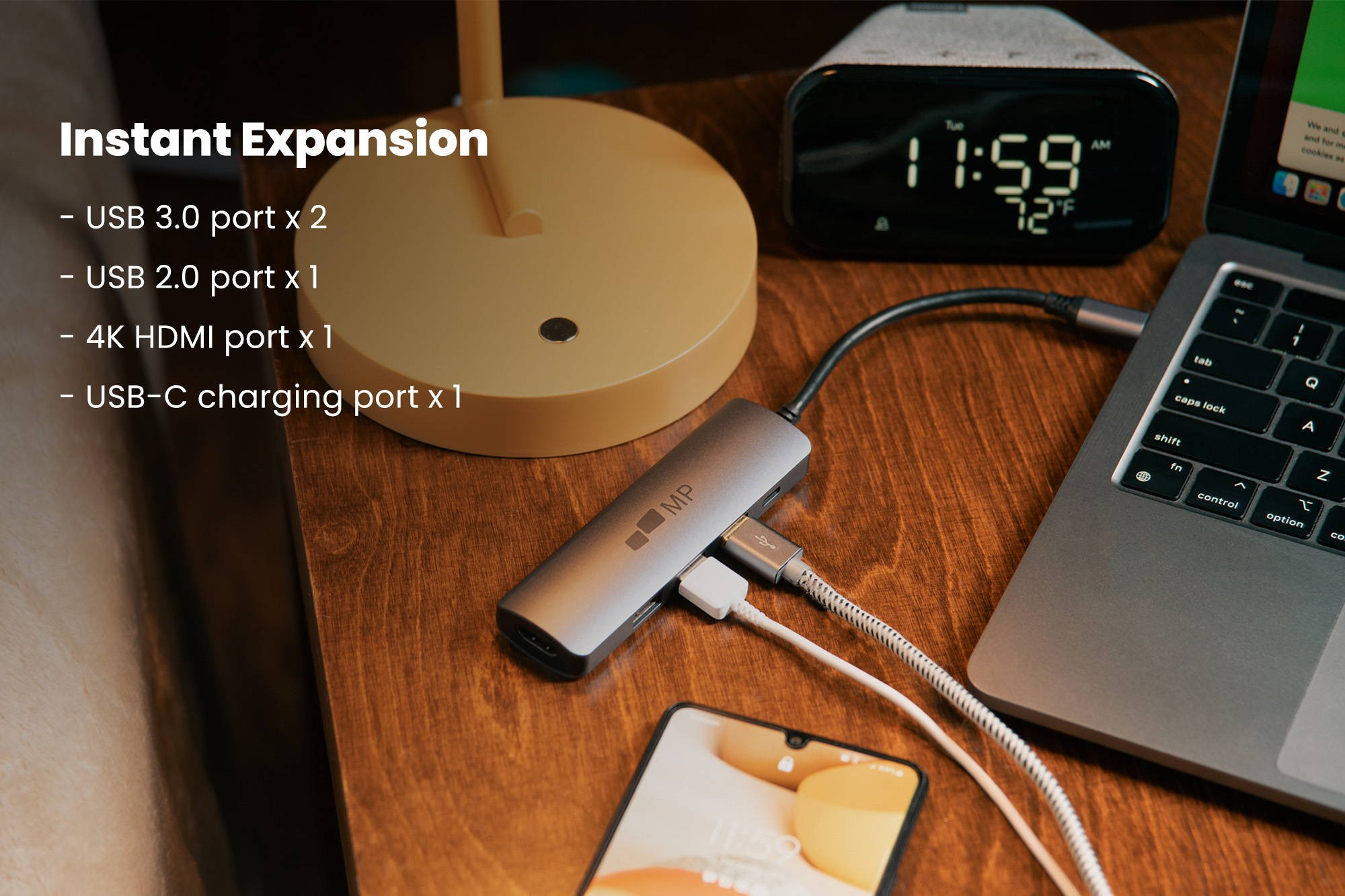 USB 3.0 port x 2/ USB 2.0 port x 1/ 4K HDMI port x 1/ USB-C charging port x 1