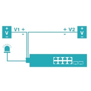 Features redundant power inputs with overload current protection and output alarm relay