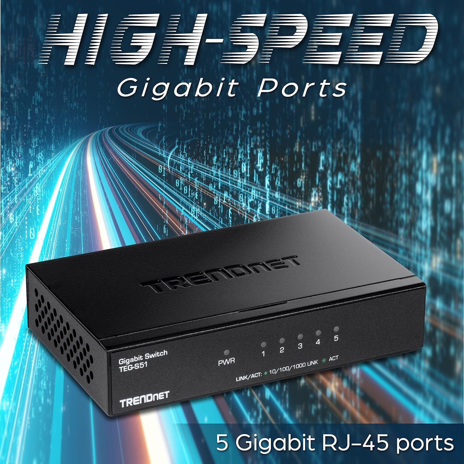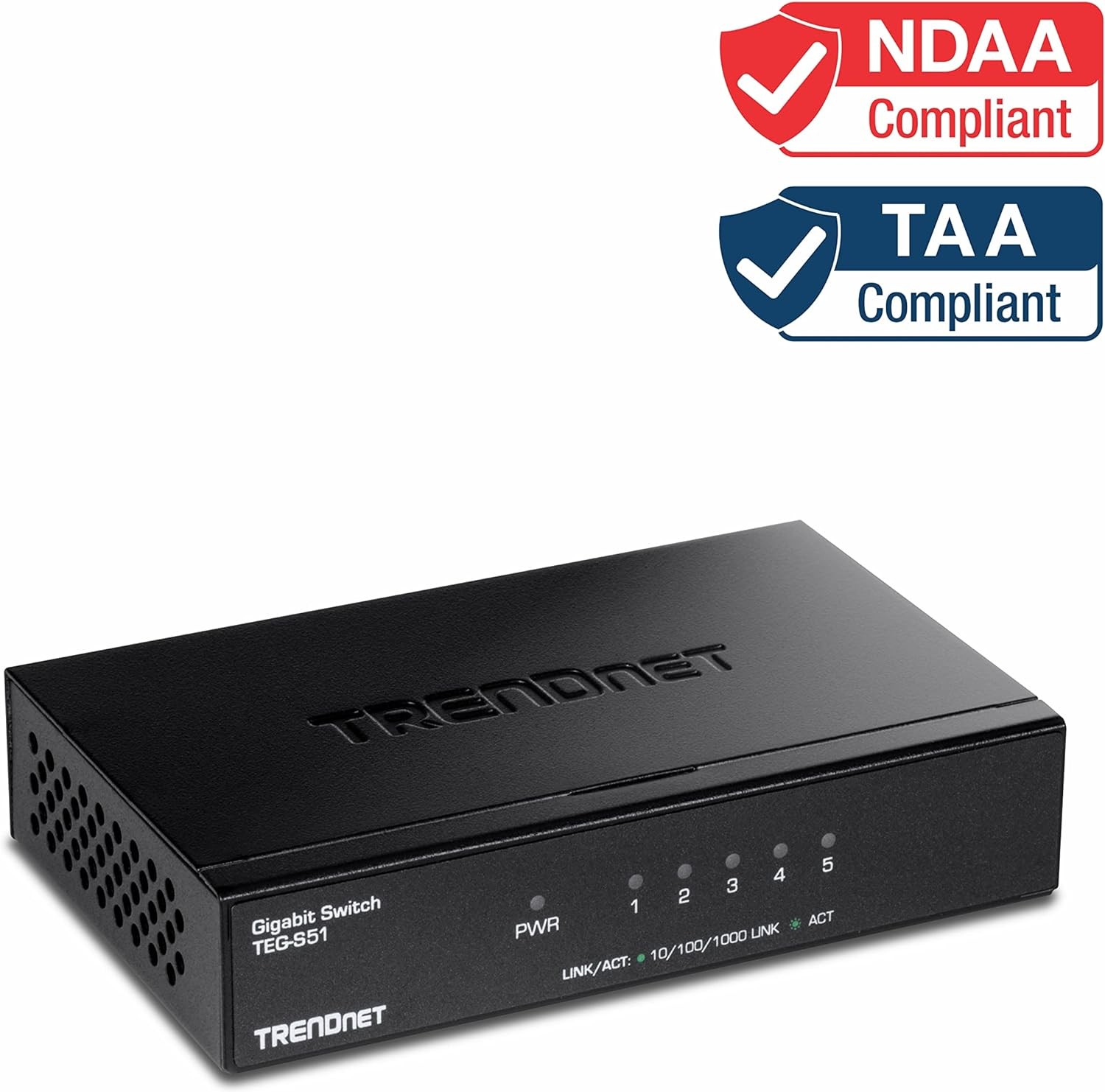 The 5-Port Gigabit Desktop Switch, model TEG-S51, provides high bandwidth performance, ease of use, and reliability. Boost office network efficiency and eliminate network congestion with gigabit speeds and a total switching capacity of 10Gbps with full-duplex mode. Integrate this sturdy metal switch for reliable high-speed network connectivity.