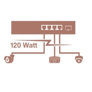 Supplies up to 30W of PoE/PoE+ power per port with a 120W PoE power budget