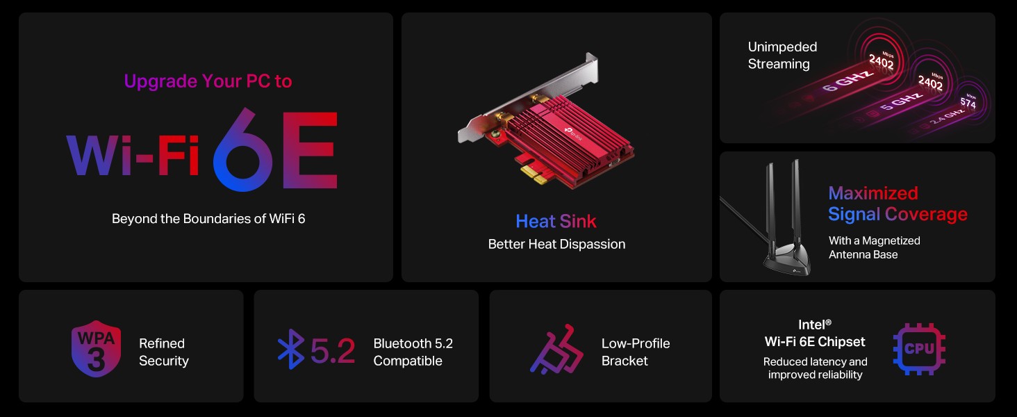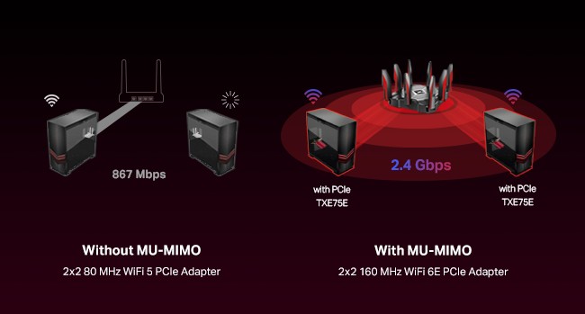 Archer TXE75E brings your PC’s WiFi reception to the next level with the combination of OFDMA and MU-MIMO. This ensures the efficiency of your desktop PC’s WiFi connection by allowing more devices to communicate with your router simultaneously rather than waiting in turn for data.