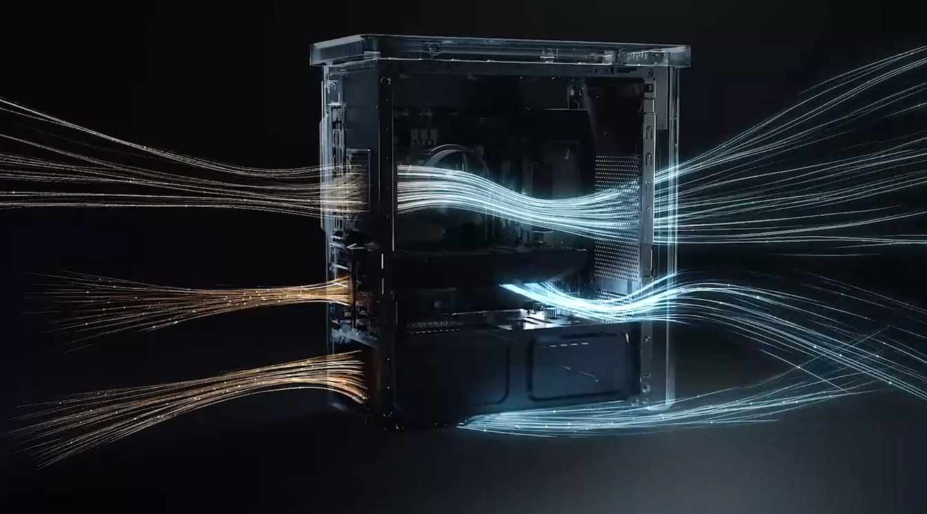 Taking advantage of being a full-sized ATX tower, ProArt Station PD5 employs a multi-zone cooling design. The layout encourages airflow and provides more space for components to breathe — especially the CPU, GPU and PSU. This means hot air is efficiently directed outside, lowering CPU temperatures by up to 5 ° C and GPU temperatures by up to 4 ° C.