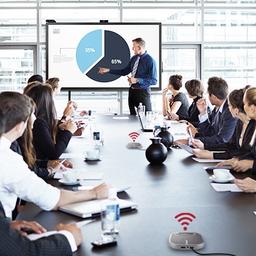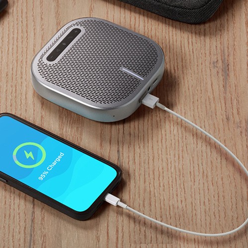With a built-in 6,500mAh battery that provides 24 hours of call time, you can hold meetings in places without a power outlet. This device can also charge your devices using integrated Quick Charge technology.