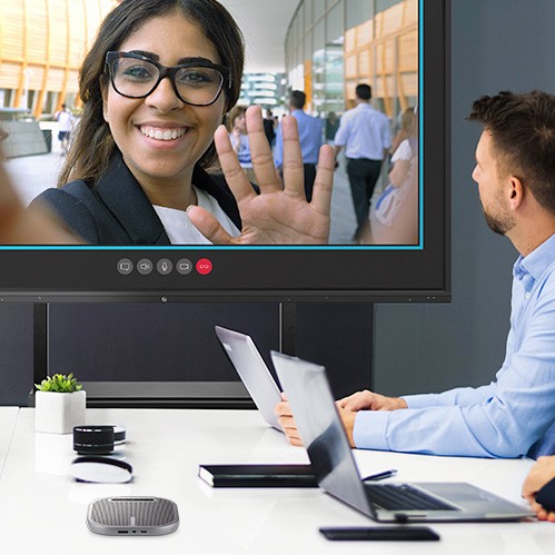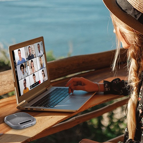 This smart speakerphone optimizes voices in real-time so you can hear participants speak clearly no matter where they’re calling in from.