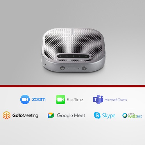This device works with leading conferencing services such as Skype, Google Meet, Microsoft Teams, Facetime, Zoom, WebEx, GotoMeeting and other third-party platforms.
