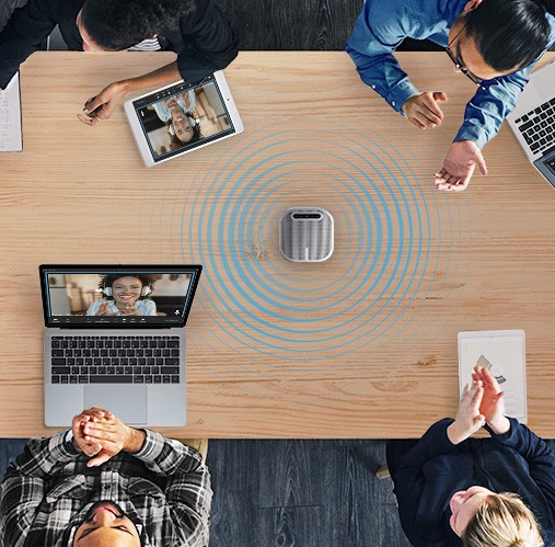 Four integrated microphone arrays provide 360° of omnidirectional sound pickup within a 20 ft. radius. Enjoy crisp conversations without static or fuzzy audio quality.