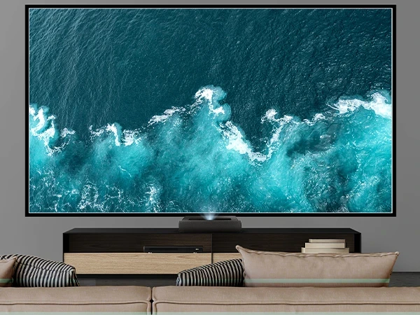 With an ultra-short throw lens, this projector can be placed just inches away from a wall or screen and deliver an immersive cinematic experience. It’s a perfect alternative to TVs that can’t match the screen size or image quality.