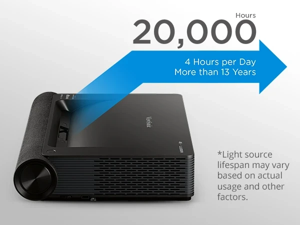 Designed with a laser phosphor light source lasting up to 20,000 hours*, this projector delivers long-term, virtually maintenance-free usage for a lower overall total cost of ownership.