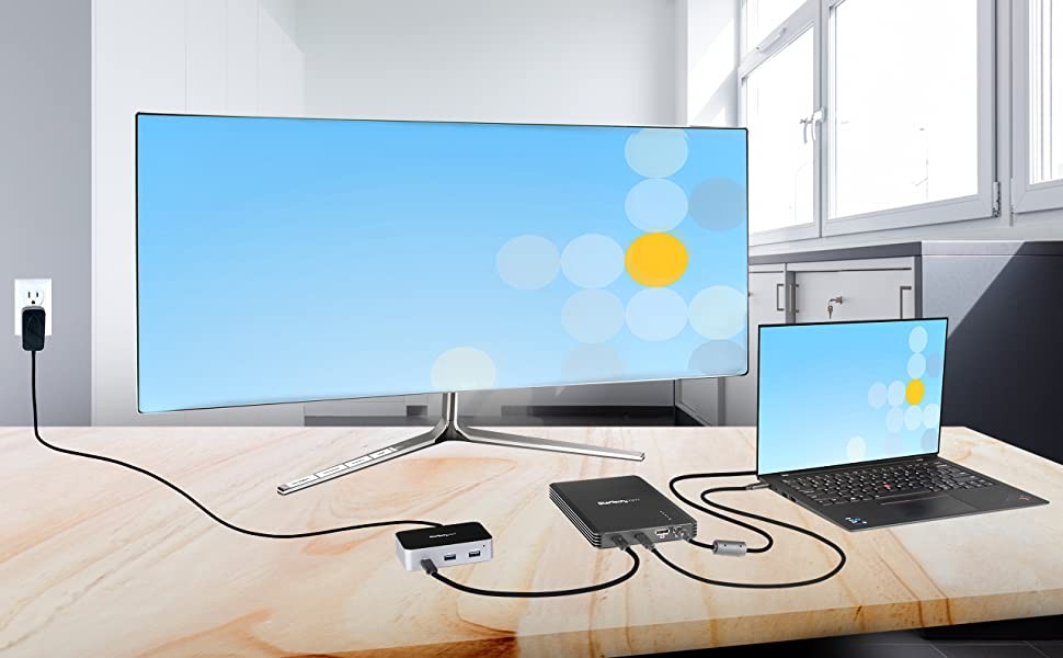 The enclosure features a DisplayPort output port, enabling you to connect a DisplayPort monitor to your computer through the Thunderbolt 3 enclosure, with resolutions up to 4K 60Hz. The enclosure also features a downstream Thunderbolt 3 port for daisy chaining an additional TB3 device or connect an additional TB3 compatible display (up to 5K 60Hz).