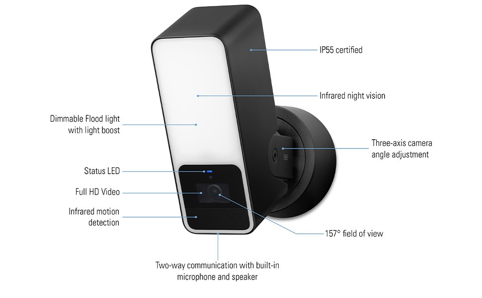 USPs: 100% privacy: HomeKit Secure Video I Dimmable floodlight I Rich notifications I People/pet/vehicle detection I Package detection I 157° field of view with night vision