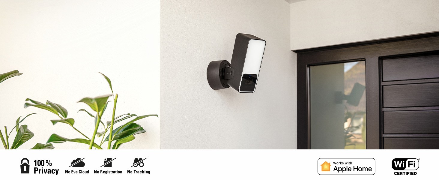 Keep a close eye on your home around the clock. Eve Outdoor Cam packs advanced technology into a sleek metal enclosure and is designed exclusively for Apple HomeKit Secure Video, built from the ground up to keep your data secure and your private space safe.