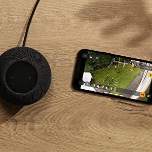 Not at home, and the courier wants to know where to drop the delivery? No problem! With the built-in microphone and speaker, you can say where to put your package.