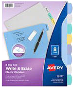 Avery Write and Erase Dividers let you write directly on the tabs with a ballpoint pen or pencil, and easily erase when a change is needed.