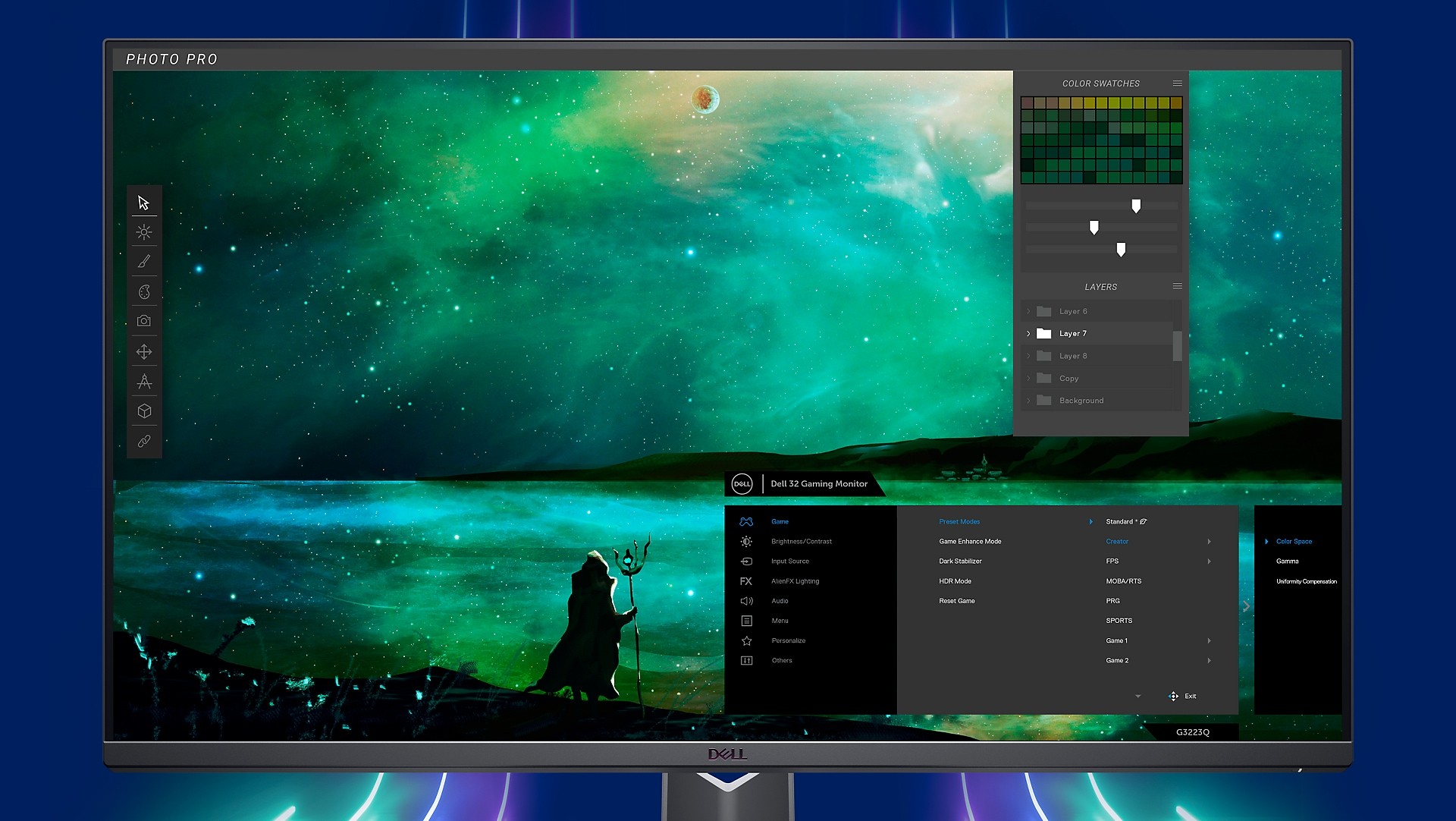 The Dell 32 4K UHD gaming monitor is a fantastic addition to your creative toolkit. Swap seamlessly between the DCI-P3 (native) and sRGB color space or adjust the gamma settings. Plus, the uniformity compensation feature helps to dynamically balance the screen to offer uniform color and brightness so you can be confident in the quality of your work.