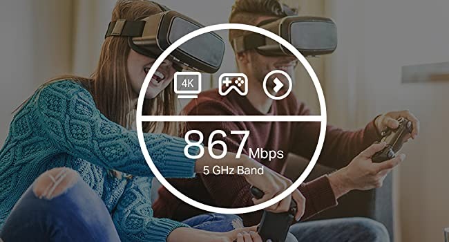 867 Mbps on 5GHz allows you to 4K/HD stream and play games lag-free.