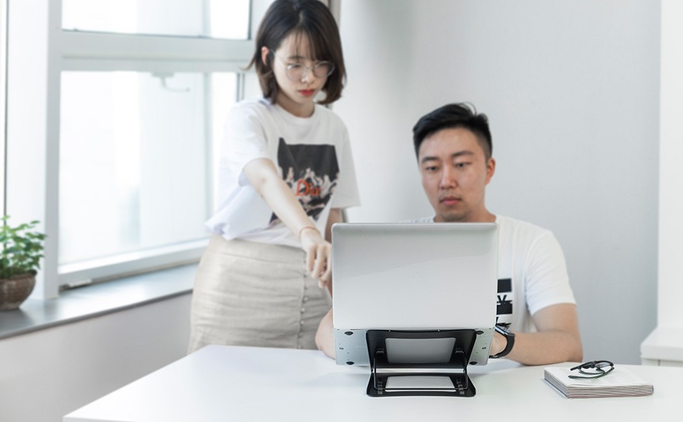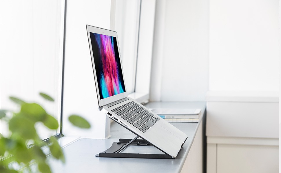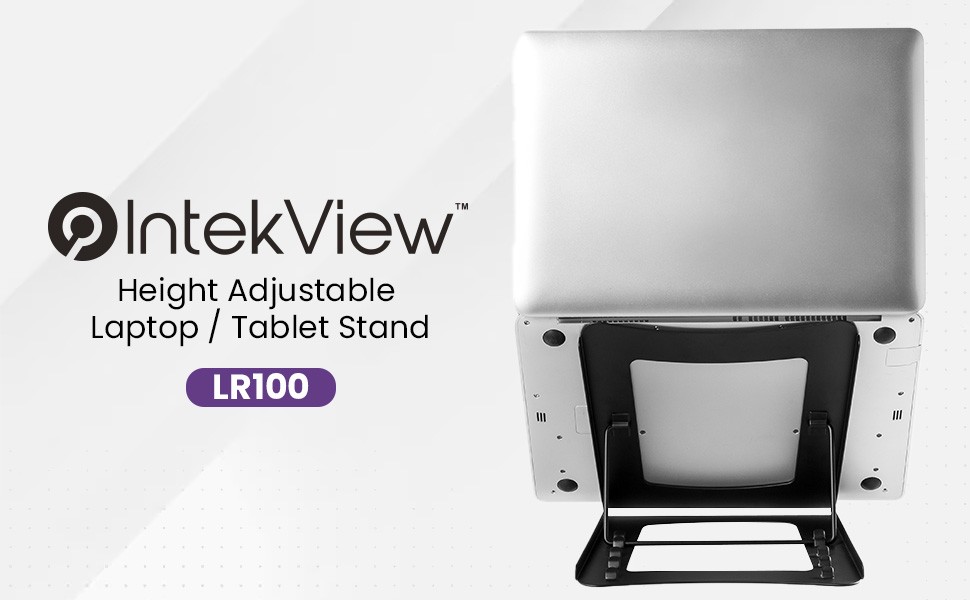 Aluminum IntekView Height Adjustable Laptop/Tablet Stand. Suitable for 10''-15'' laptops and most tablets.