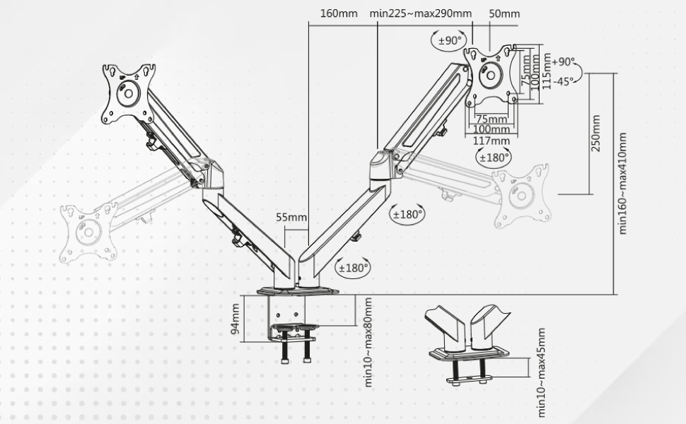 IntekView Dual Monitor Mount with Gas Spring The MS152 allows you to clear your desk's surface while providing an ergonomic working position.