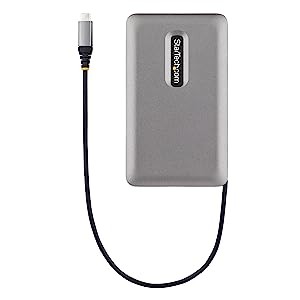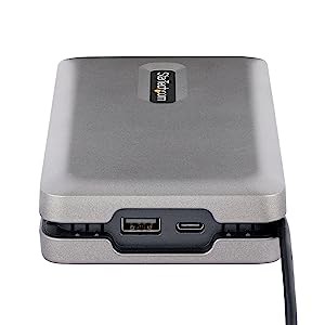 The lightweight docking station features a built-in 10 in (25 cm) USB-C host cable for added setup flexibility and to reduce port strain
