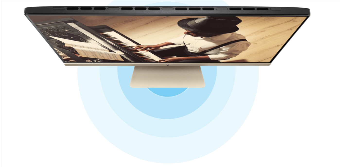 The stunningly beautiful ASUS M3700 all-in-one PC has a 27-inch FHD LED display with a near-invisible 3 mm display bezel that gives you edge-to-edge visuals and an incredible 91% screen-to-body ratio. Combined with its advanced ASUS SonicMaster audio — featuring Dolby Atmos and two-way AI-powered noise cancelation — M3700 immerses you in amazing visuals and superb sound for the ultimate entertainment experience.
