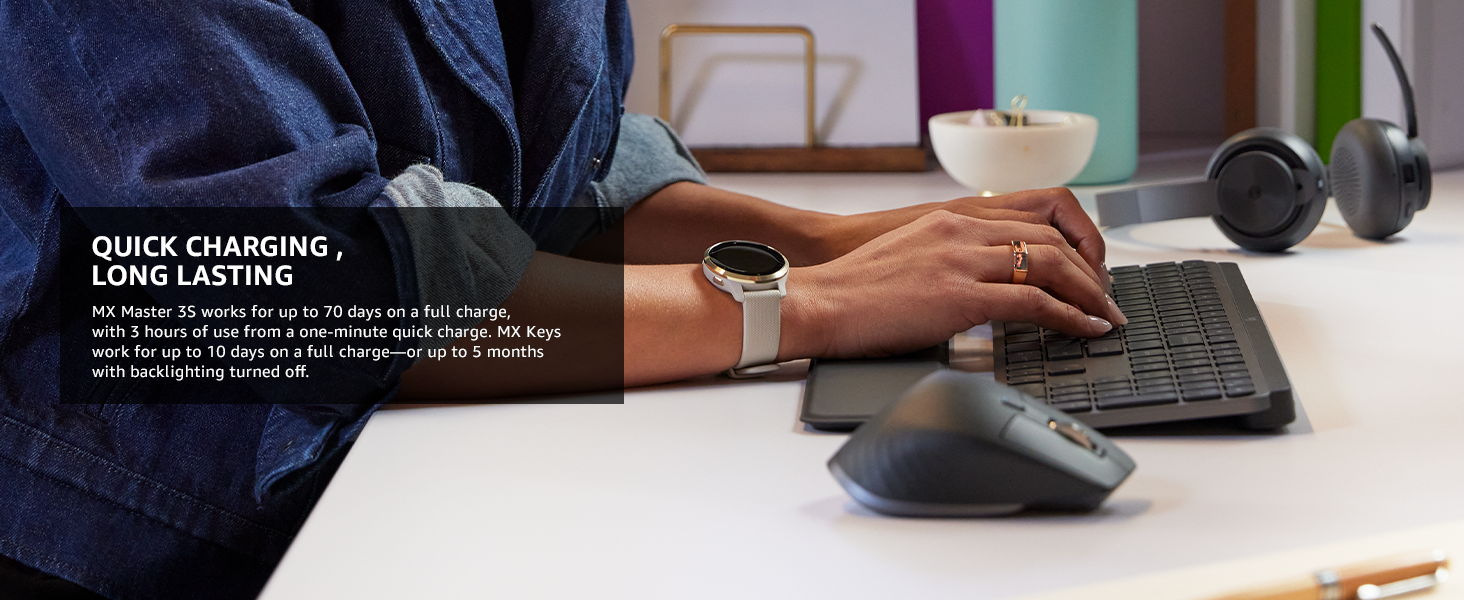 Robust wireless connection via Bluetooth Low Energy or Logi Bolt USB receiver.