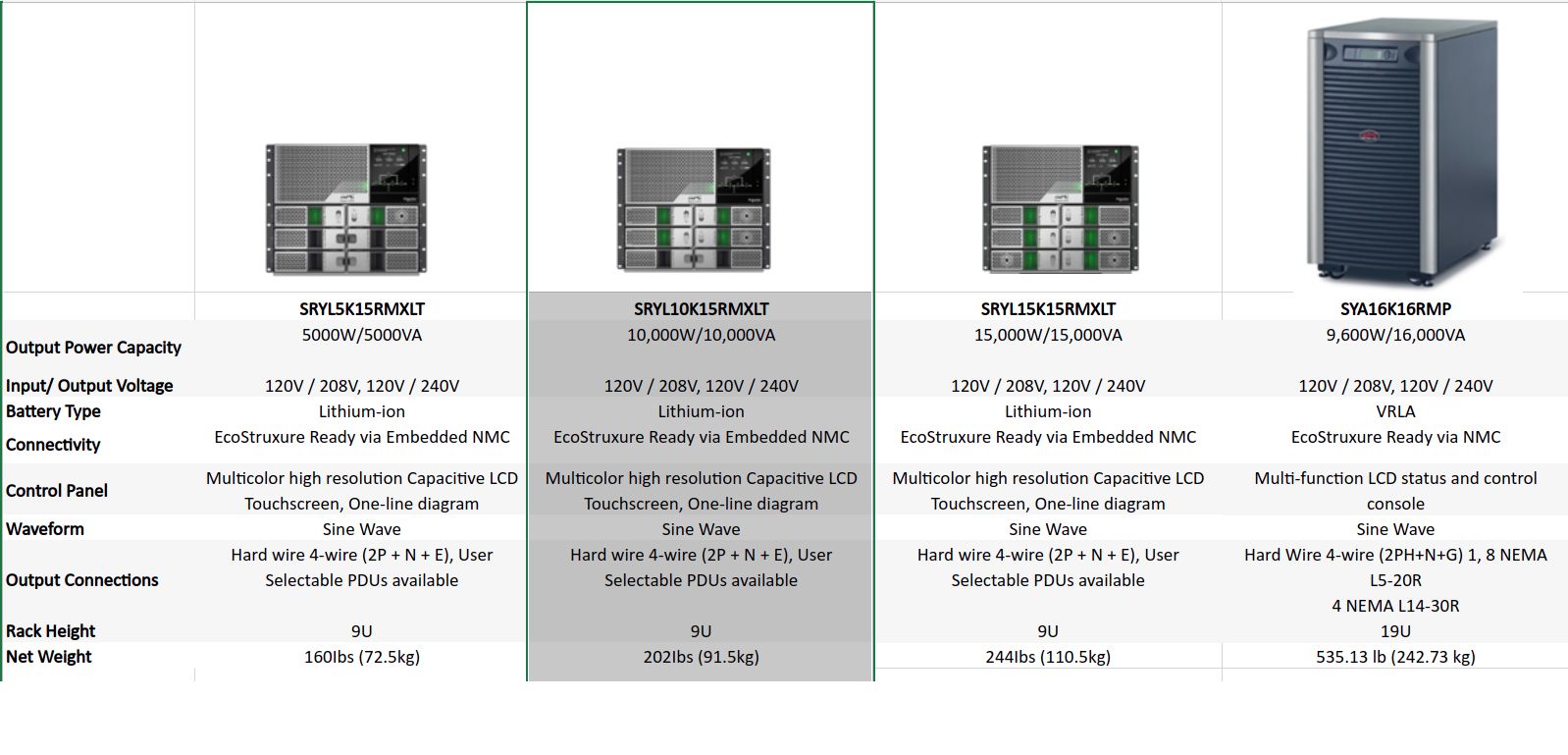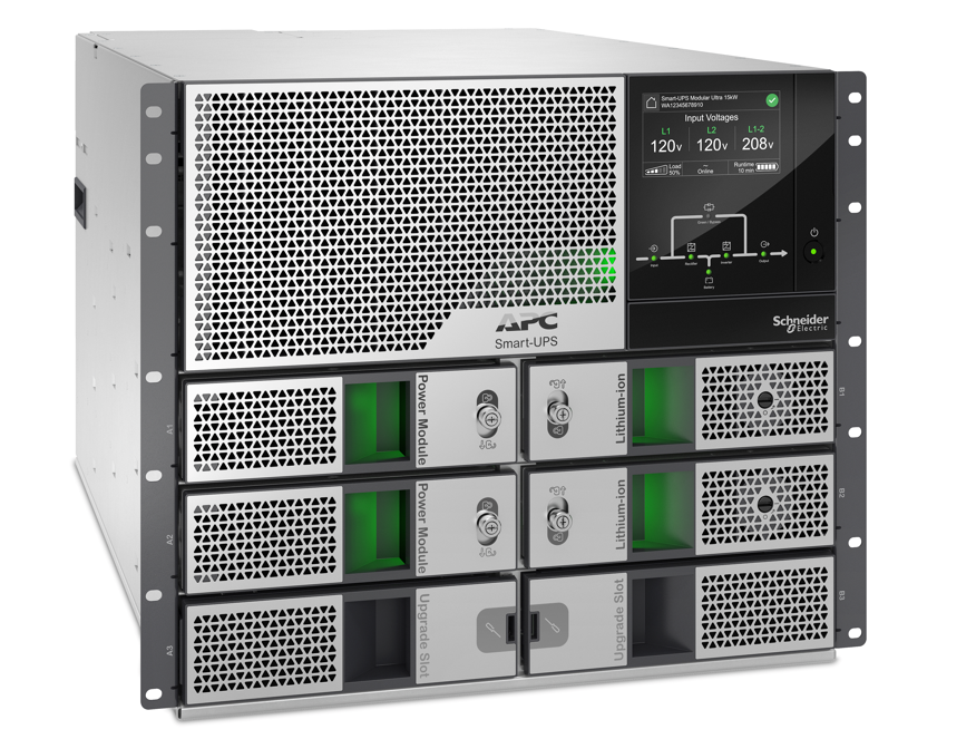 The APC Smart-UPS Modular Ultra 10kW scalable to 15kW in 9U with 120/208/240V split phase output. Its next generation semiconductor technology delivers up to 15kW in half the size of comparable UPSs. In addition to long lasting Lithium-ion batteries the weight is reduced by 60% in comparison to Lead Acid VRLA UPS. With the Embedded Network port you can monitor and manage your UPS anytime, anywhere.