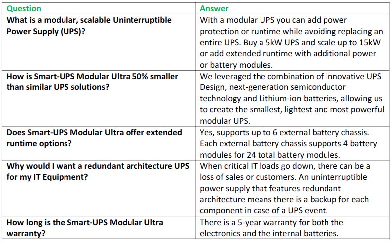 With 10kW of scalable single phase power protection in 9U, Smart-UPS Modular Ultra gives you more room and 2.5x more power for IT equipment than comparable Modular UPS.