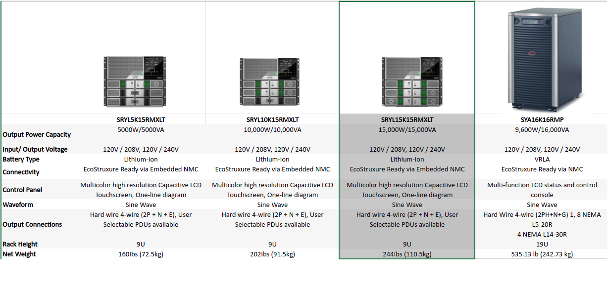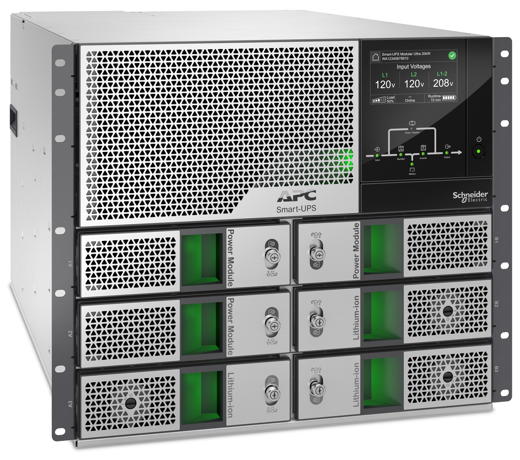 The APC Smart-UPS Modular Ultra 15kW configurable to 10kW N+1 in 9U with 120/208/240V split phase output. Its next generation semiconductor technology delivers up to 15kW in half the size of comparable UPSs. In addition to long lasting Lithium-ion batteries the weight is reduced by 60% in comparison to Lead Acid VRLA UPS. With the Embedded Network port you can monitor and manage your UPS anytime, anywhere.