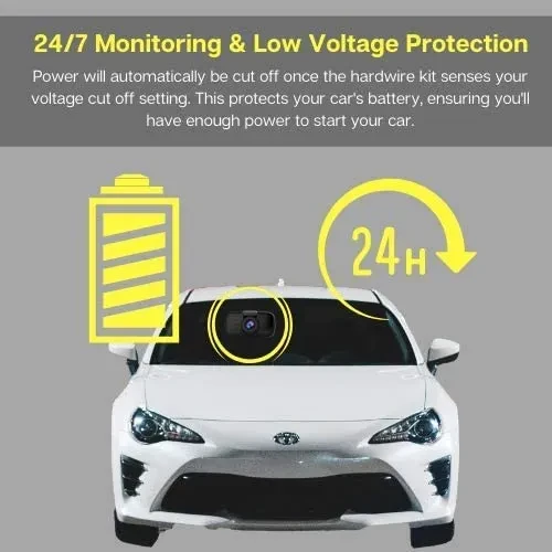 Monitor your car when it’s parked using motion detection mode. Power on your dash cam with the OBD II power cable. Easy DIY, with no professional, hardwire needed. Free up your cigarette power port, allowing for other uses. Equipped with low voltage protection, to automatically shut off power to maintain your car’s battery power.