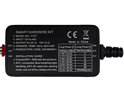 This smart hardwire display kit is a 9.8 foot cable to make your life easier when hardwiring your dash cam to your car with the LCD display of the voltage and voltage settings. This kit will prevent the battery from being depleted when the dash cam is hardwired to the car.