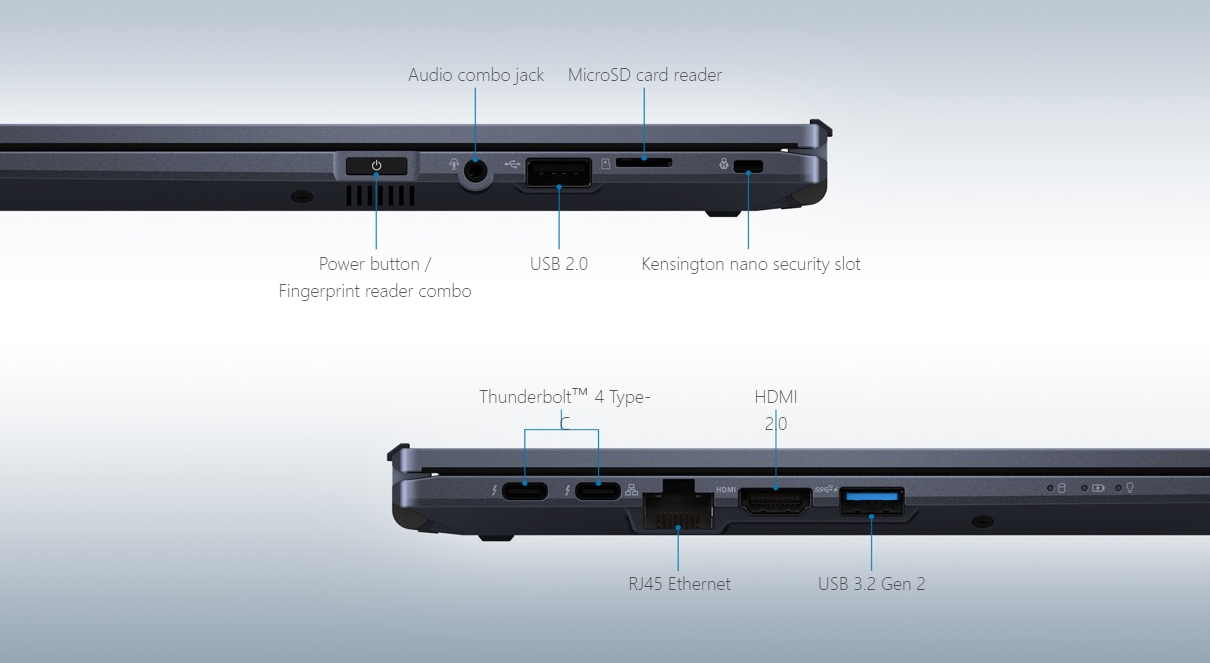 Despite its thin profile, ExpertBook B5 is loaded with I/O ports. These include cutting-edge Thunderbolt