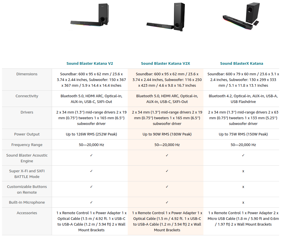 Introducing Sound Blaster Katana V2X, the latest to join the ranks of our top-performing gaming soundbars with its powerful audio and all the finest features of its predecessors, but with a much compact subwoofer that is 40% smaller than Katana V2. For those looking for a discreet subwoofer, the Sound Blaster Katana V2X is a smart choice for rooms with space constraint.
