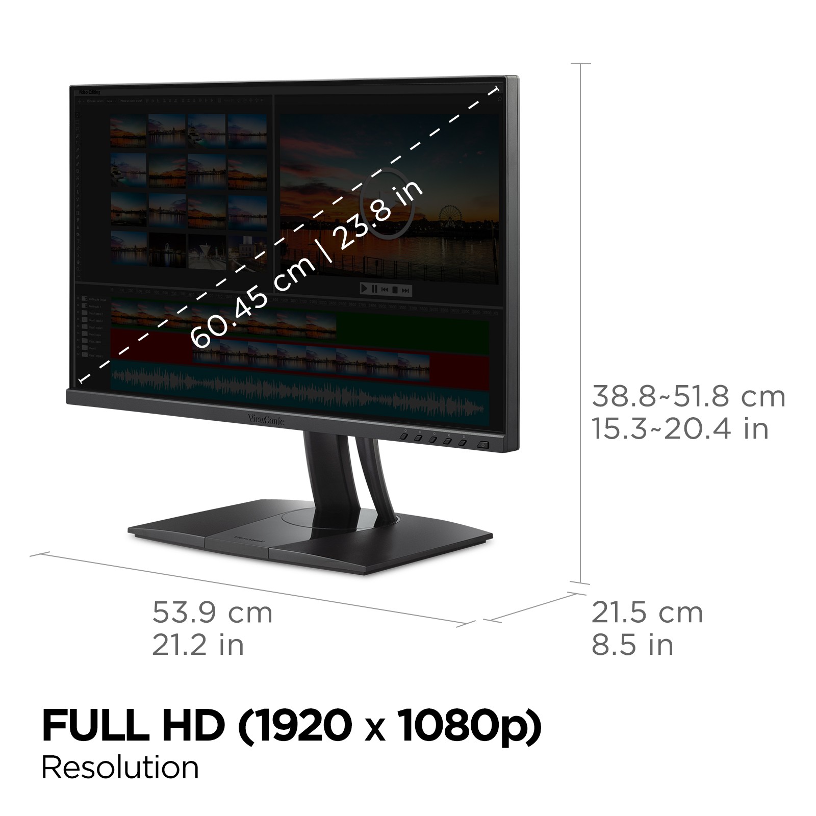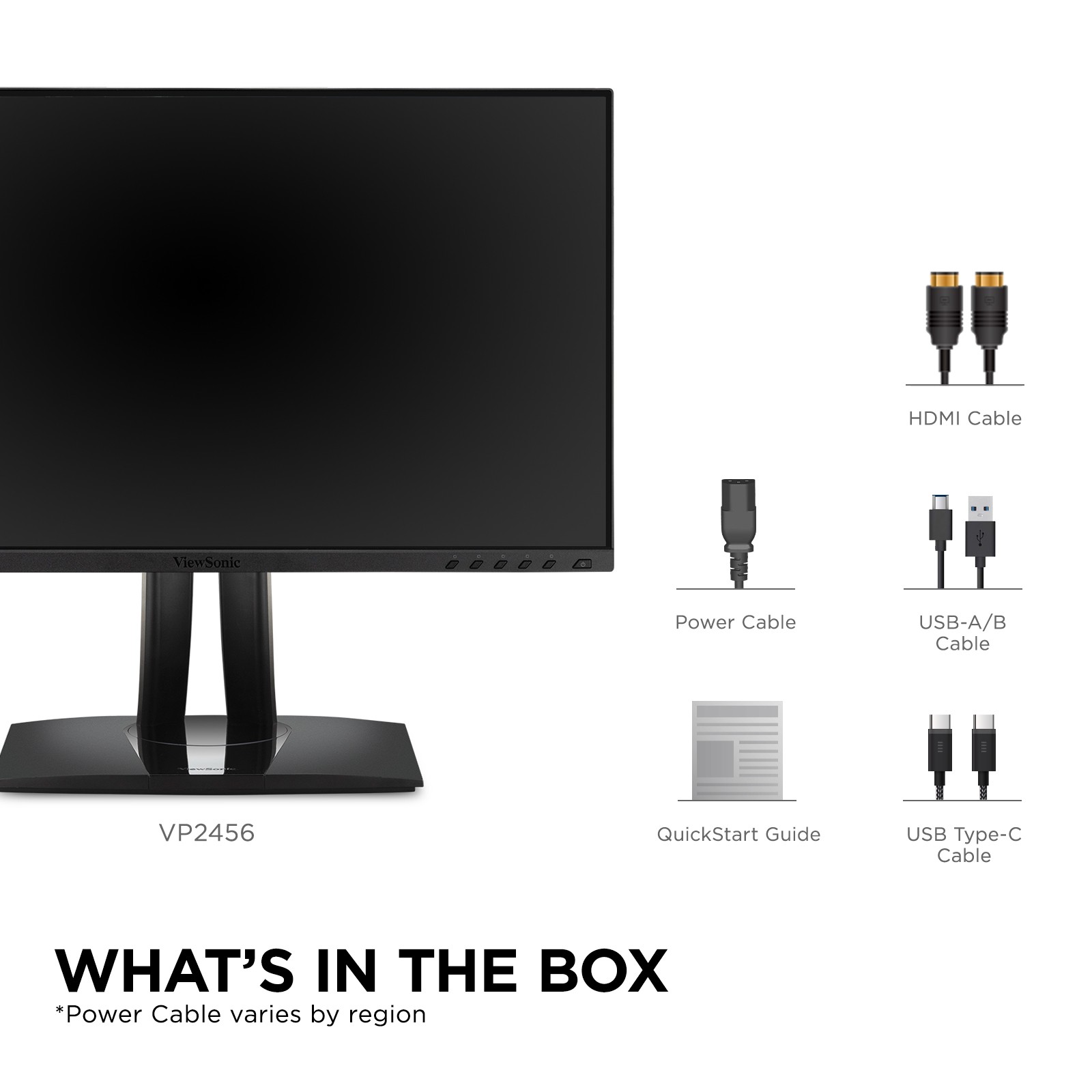 Engineered to deliver unmatched color accuracy crucial for professional applications, the ViewSonic® VP2456 24" (23.8" viewable) Full HD monitor displays your work with the vivid and lifelike color it deserves. With a SuperClear® IPS panel and a sleek 3-sided frameless design, the VP2456 provides a near-seamless viewing experience ideal for multi-monitor setups. The VP2456 is equipped with USB-C for single cable connectivity to deliver video, audio, and 60W of power delivery. To ensure precise, uniform color, each of our monitors is factory calibrated to deliver an amazing Delta E <2, so you can be confident what you see on screen is what your clients and customers will see as well.