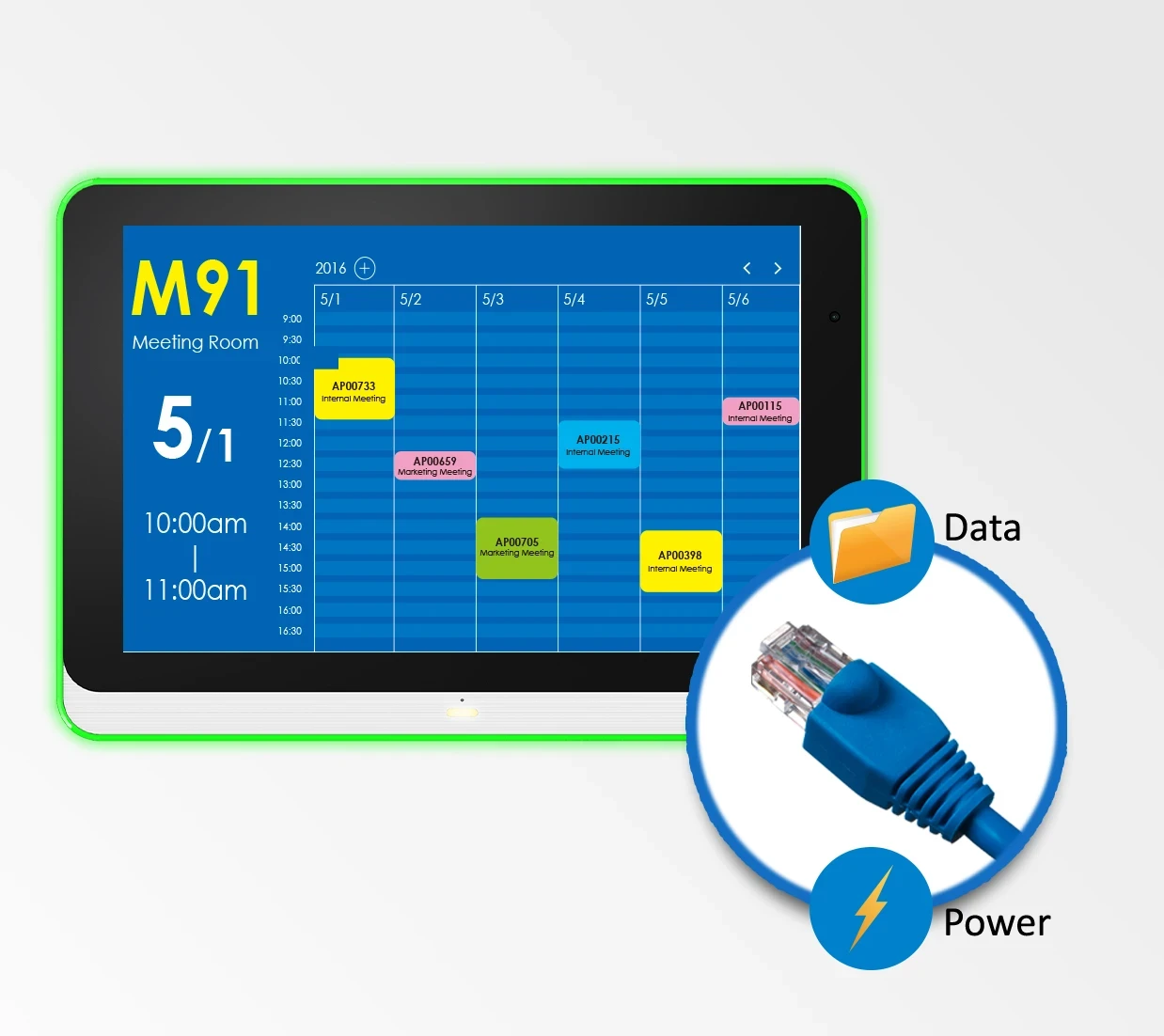 The ViewSonic ® EP1052T-A is a 10.1" all-in-one interactive digital ePoster that can be used as a video conferencing touch controller, meeting room scheduler and communication signage display. For video conferencing, the EP1052T-A provides one-touch join, easy content-sharing, and a seamless meeting experience across all rooms. When used with certified room scheduling software such as EMS, PLANON, APPSPACE, PRONESTOR and more, the EP1052T-A simplifies meeting room scheduling. The EP1052T-A is also ideal for interactive signage, information kiosks and other on-demand messaging. Filled with user-friendly features like Signage Manager Express software, Power over Ethernet one-wire installation, door lock access control – and so much more – it makes loading, playing and managing content easy and reliable.